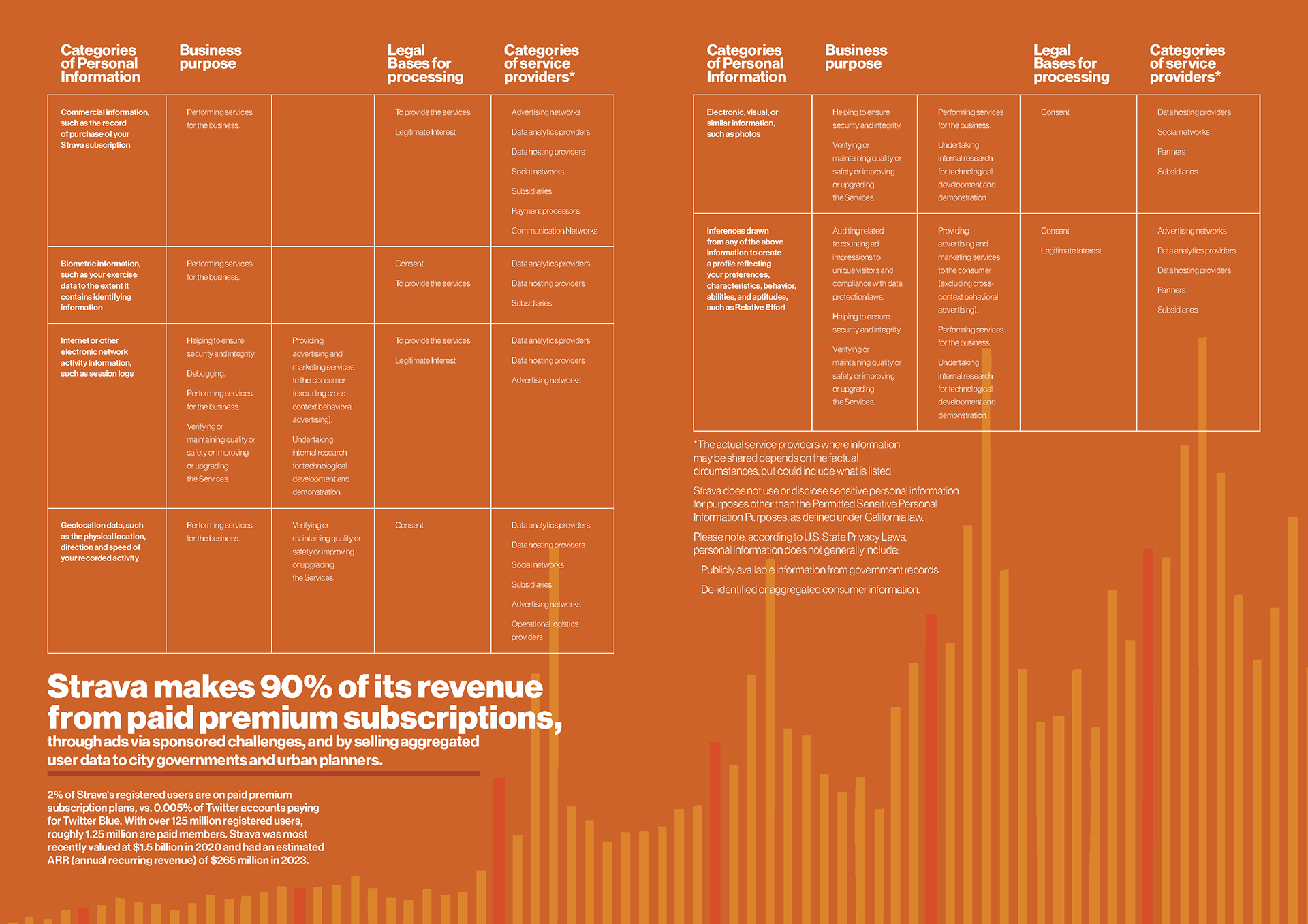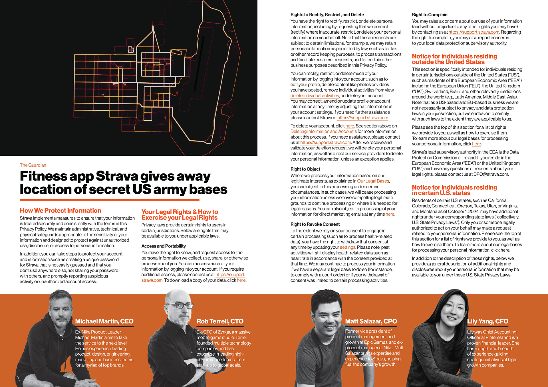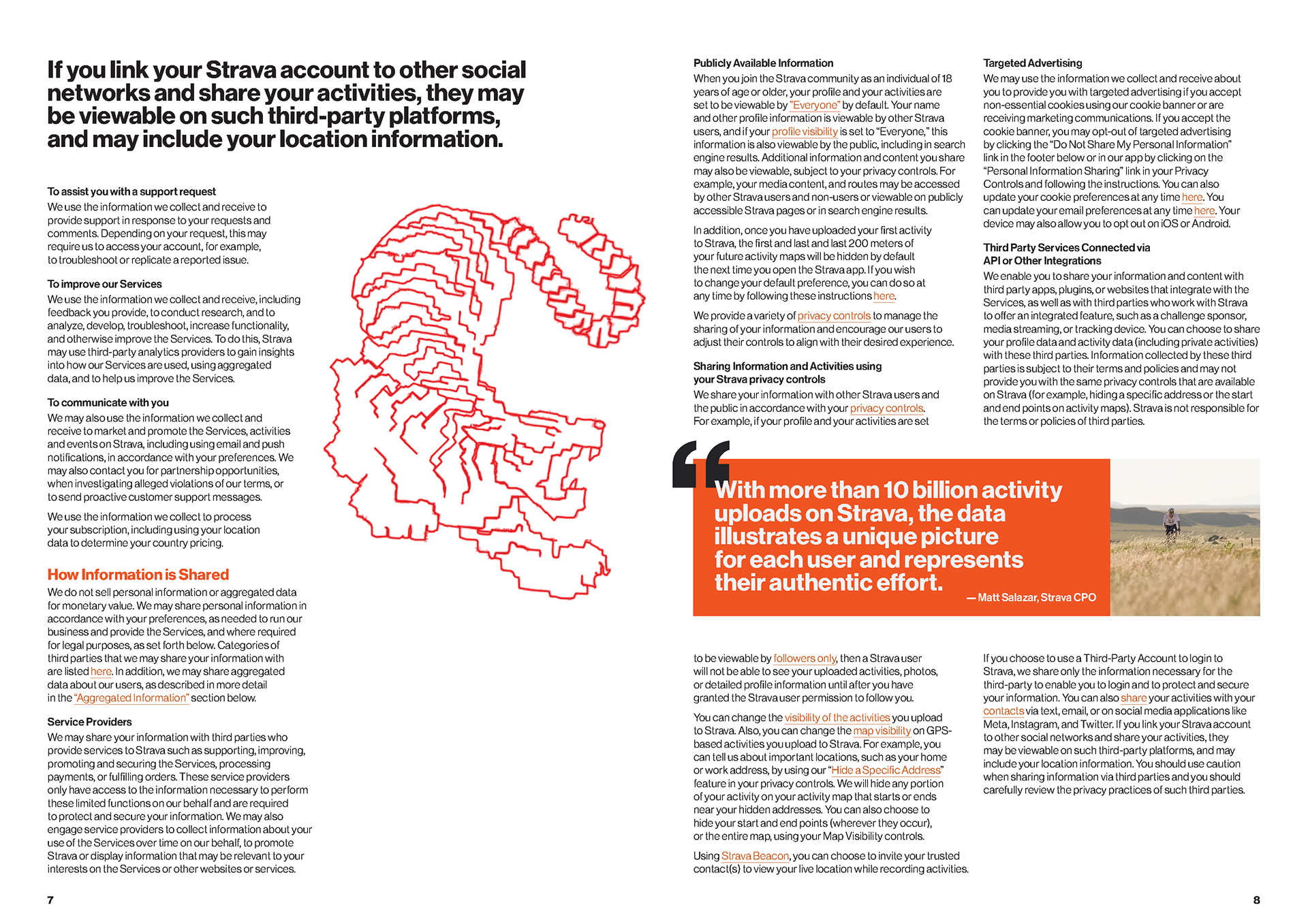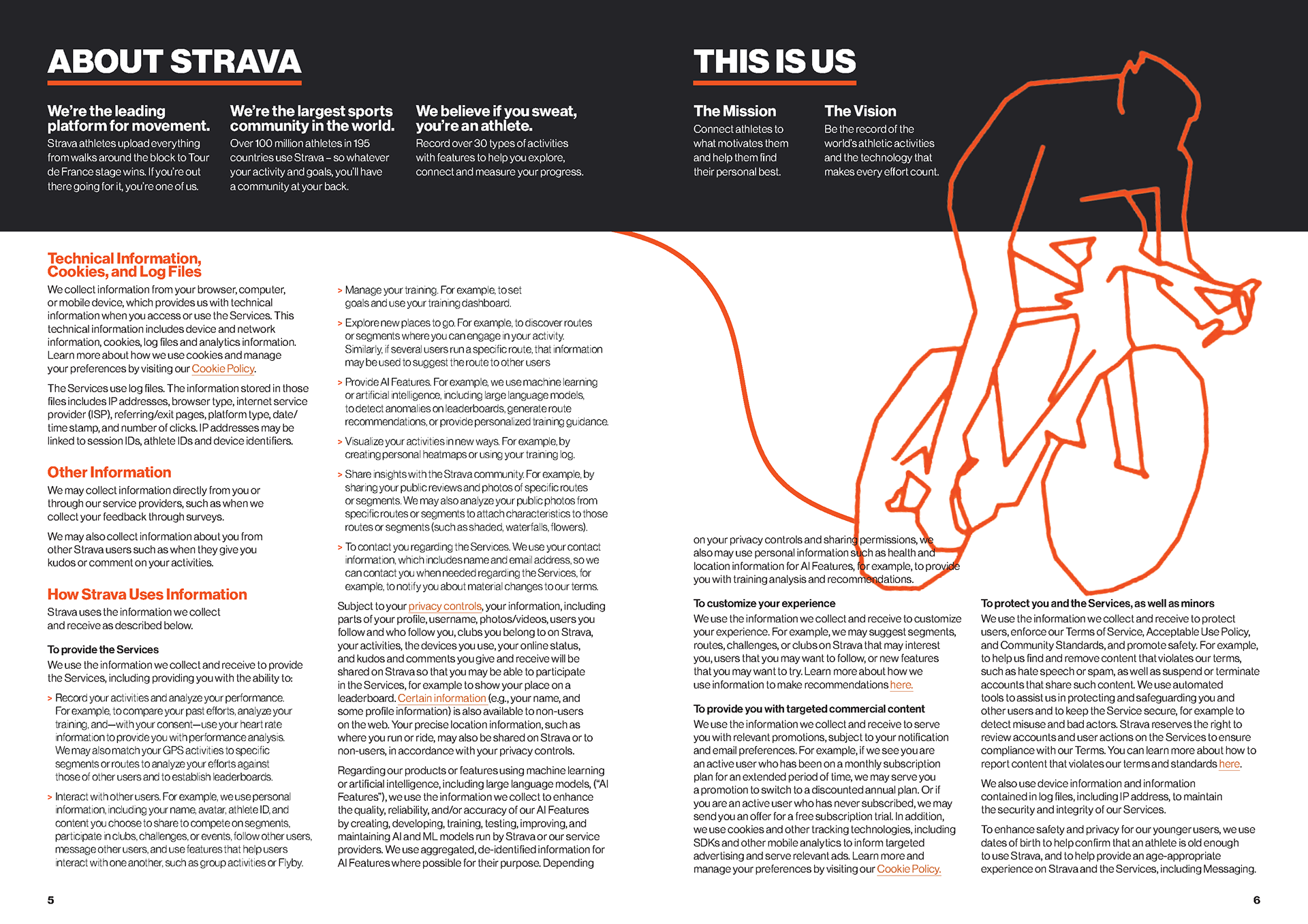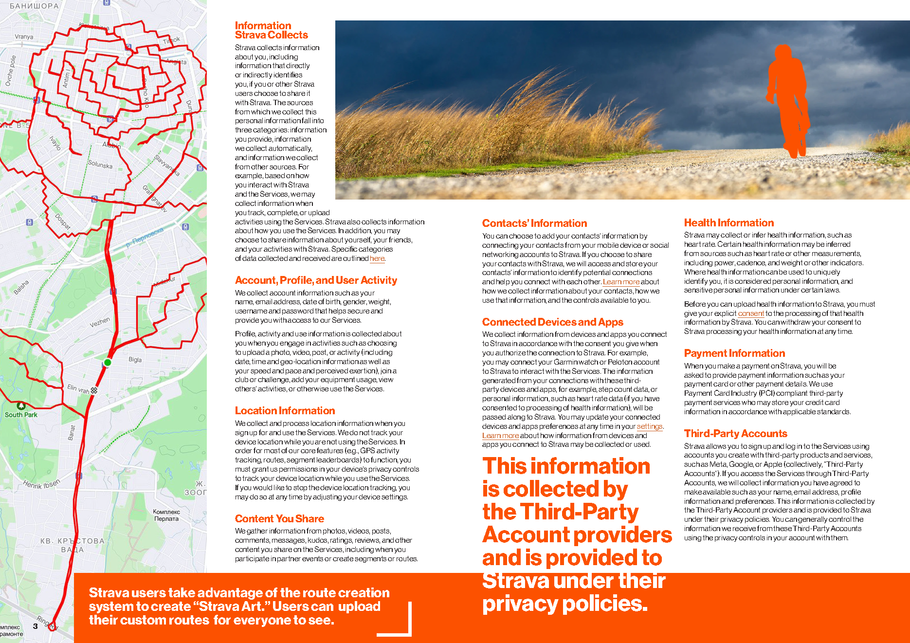 I chose the app Strava’s privacy policy as the content of this magazine. Each spread highlights skeptical parts of the policy, uses imagery from Strava to accentuate the narrative, and handles a large body of text.